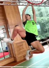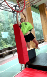 - 鉄の棒にぶら下がって隣りに渡っていく彼女。腹筋チラ見え(@enojura_mukiko)