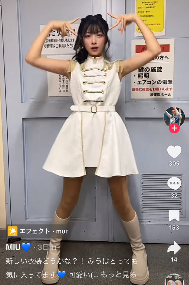 白いミニワンピ姿の全身ショット(@miu_primeiro)