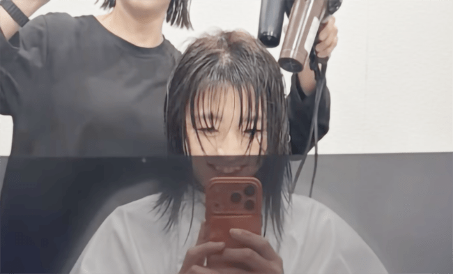 角田の濡れた髪、美容室にて(23日、角田のインスタより)