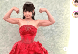- 赤いドレスでマッスルポーズ(@wakanauehara_official)