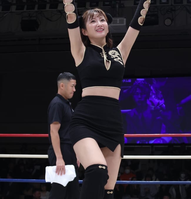 空手黒帯ラウンドガール、“鍛えた太腿”ミニチャイナで登場!ハロウィン姿に会場沸く[2025/10/27]