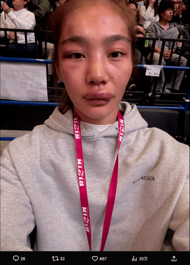 唇が“たらこ”に!人妻モデル戦士がダウン奪われ腫れあがる!ファン「可愛い顔が…」[2025/11/4]