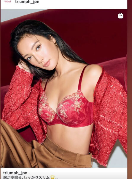 モデルを務めるブラをつける菜々緒(@triumph_jpn)
