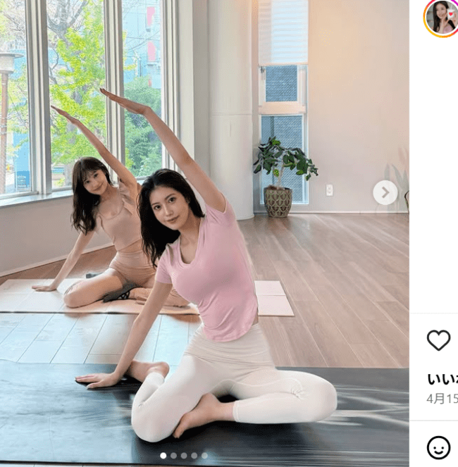 ピンクのTシャツに白いレギンスのトレーニング姿の阿部(@i.am_natsuki_)