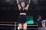 空手黒帯ラウンドガール、鍛えた太ももでファン魅了!激闘に大興奮