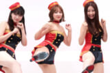 - Krushガールズお披露目会見で蹴り!瀬戸(中央)は誰よりも高く上げていた