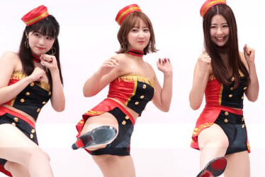 Krushガールズお披露目会見で蹴り!瀬戸(中央)は誰よりも高く上げていた