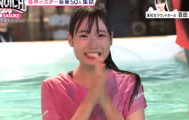 びしょ濡れになるしおりん(『【TBS公式】SASUKEチャンネル』)