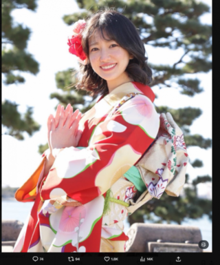 ちょっとふっくら!?振り袖姿の佐藤(@satoakarii)