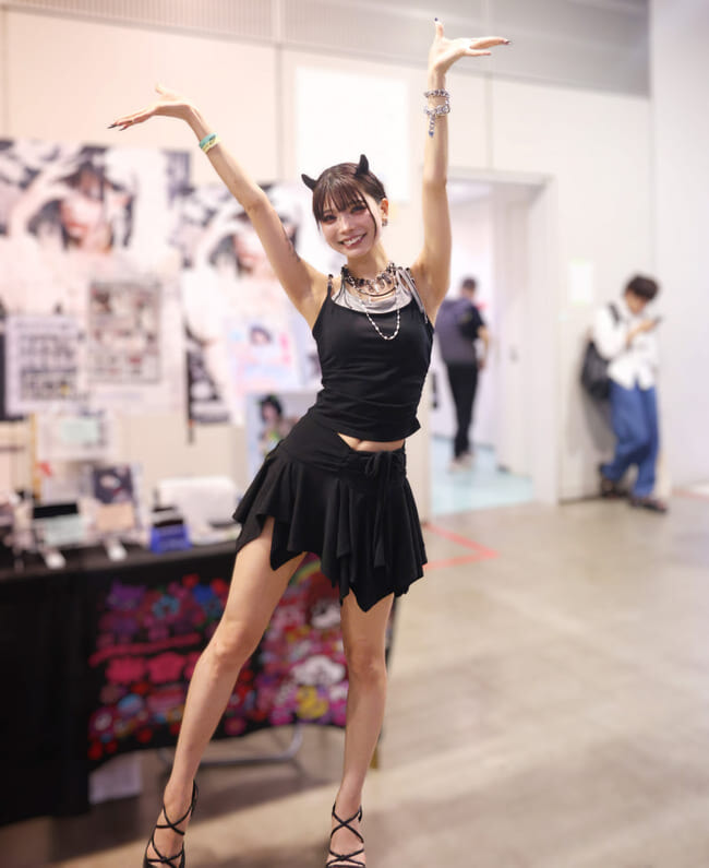 小悪魔コスプレにデカ女ポーズ!(撮影:イーファイト)