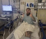 - 手術を受けて病院のベッドでポーズをとるジェイク(@jakepaulより)