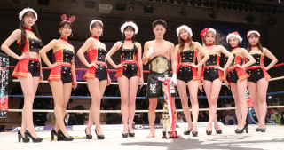 19日のKrush後楽園ホール大会には、サンタ帽を被りミニ衣装でボードを持ち、長い脚で堂々とリングを歩き、激しい試合に華を添えた。