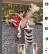 - ミニスカサンタでかかと落とし成功!(@mina_horie)