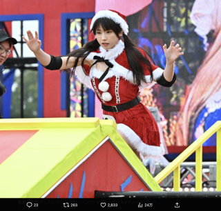 応援席からは「早い」と声が飛んだが、濡れたサンタコスの胸元がかるくはだけ、思わぬサービスシーンも。