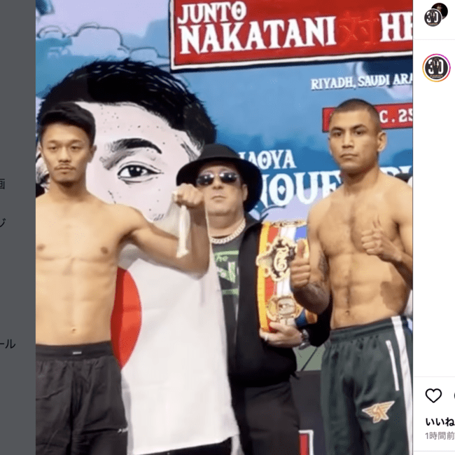 中谷とヘルナンデスが計量パス(ヘルナンデスのインスタより)