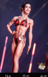 元RIZINラウンドガール、背中の筋肉が鬼の顔に!ヒップアップも美しすぎて…フィットネス日本一の肉体美