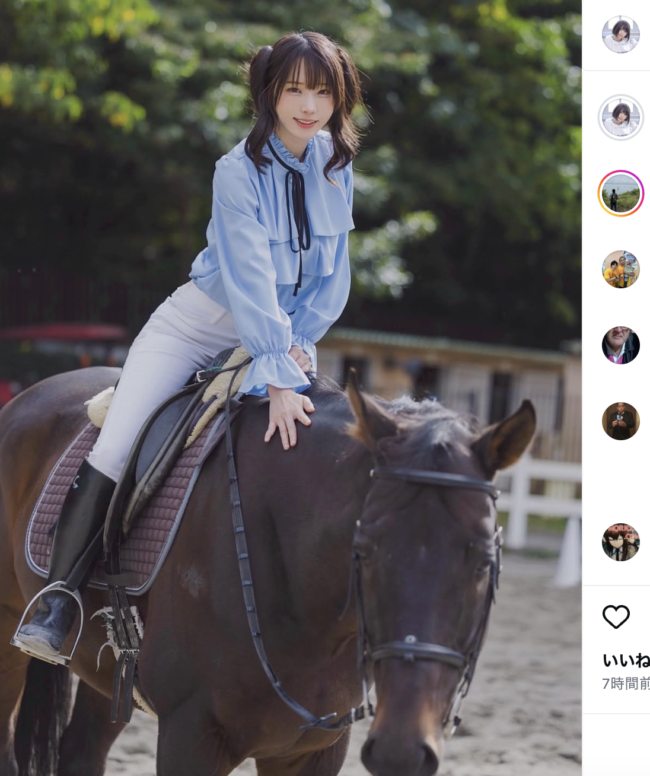 えなこは新年の挨拶に干支にちなみ筋肉隆々な馬に乗った(えなこのインスタより)