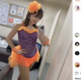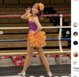 - オレンジと紫の衣装でラウンドガール(@rinanagahisa)