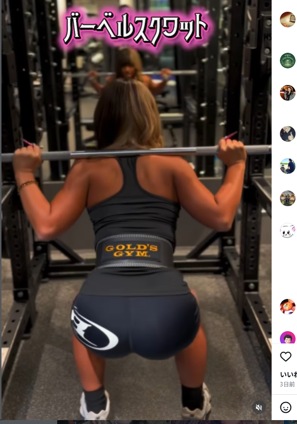 スクワットで脚を鍛えるルナ(@llbenayll)