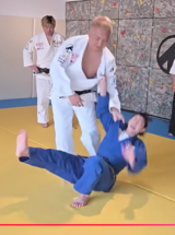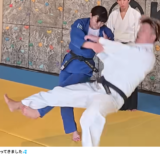 - 鈴木桂治に足払いされる角田(角田夏実YouTubeチャンネルより)