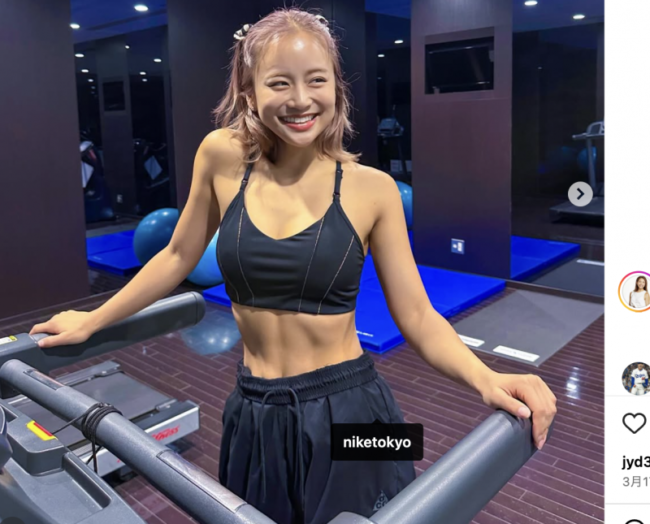 田辺の割れた腹筋(@risako_tanabeより)