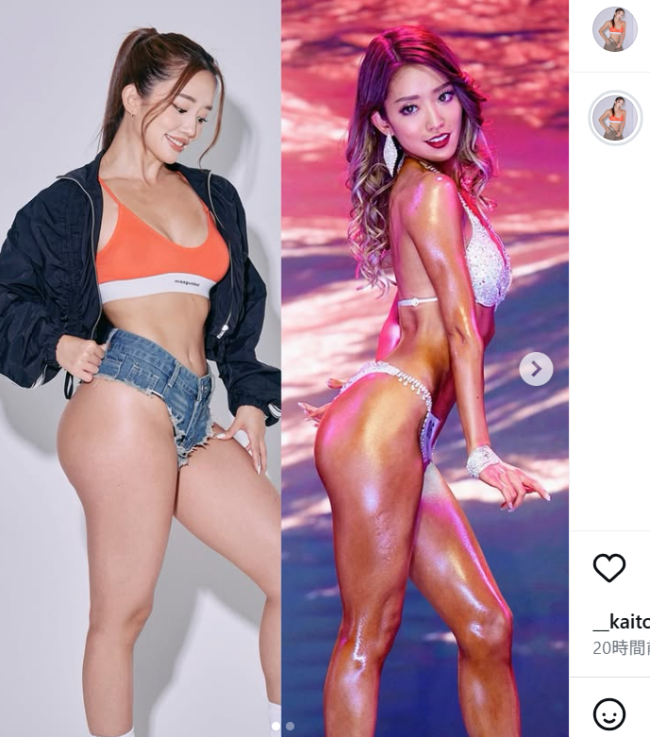 右はボディコンテスト時の17~18年。左は現在のボディだ(@emiyanagimoto)