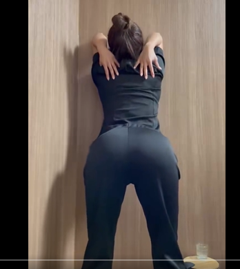 お尻を突き出しストレッチする安藤(@kyoka_actor)
