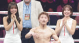 - 勝利した井上拓真の後ろで微笑む森脇