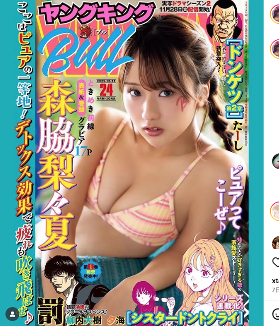 ヤングキングBULLの表紙を飾る森脇梨々夏(@ririka_0508)