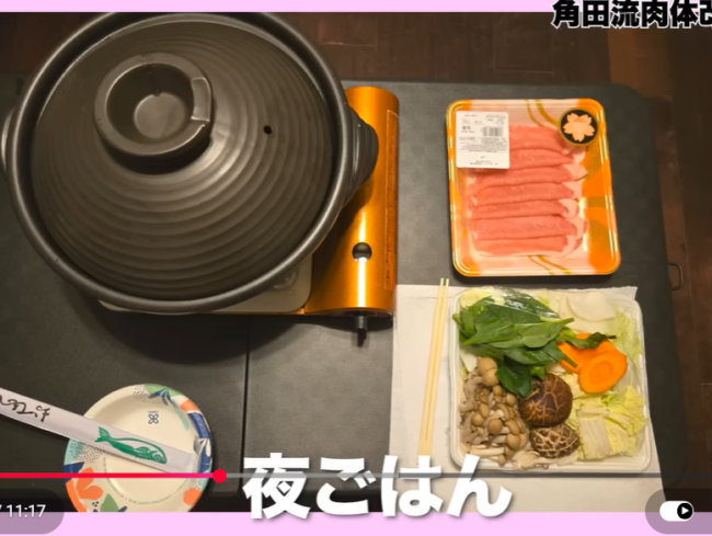 角田流肉体改造での夕飯(角田夏実YouTubeチャンネルより)