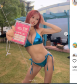 【フォト】腹筋チラ見せ!“バズーカ乳”のビキニ姿も