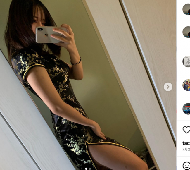 チャイナドレスから美脚を見せる(@lily._.mg35より)
