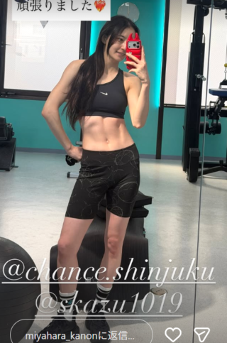 割れた腹筋を見せた宮原(@miyahara_kanon)