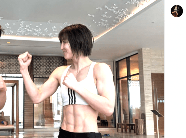 2024年2月試合前のバキバキボディ(角田夏美インスタより)