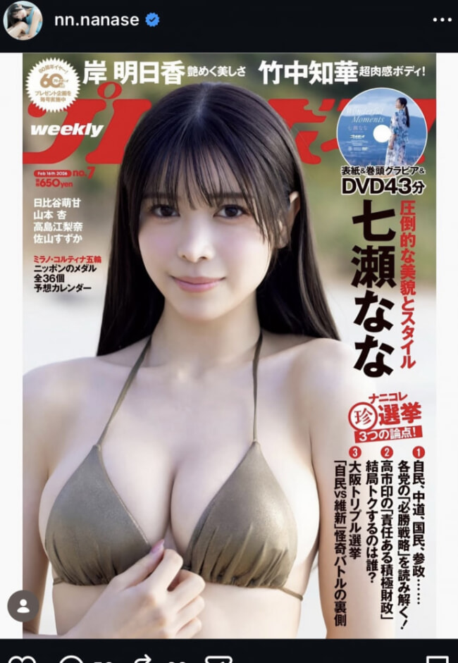 七瀬ななが表紙の『週刊プレイボーイ』@nn.nanaseより ▶Amazonページへ