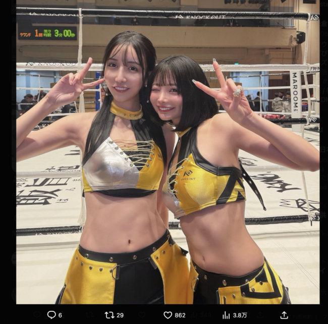 なんと“デカ女”が2人に!腹筋美と長い美脚でラウンドガール!「2人共180cm越えでした」[2026/3/16]